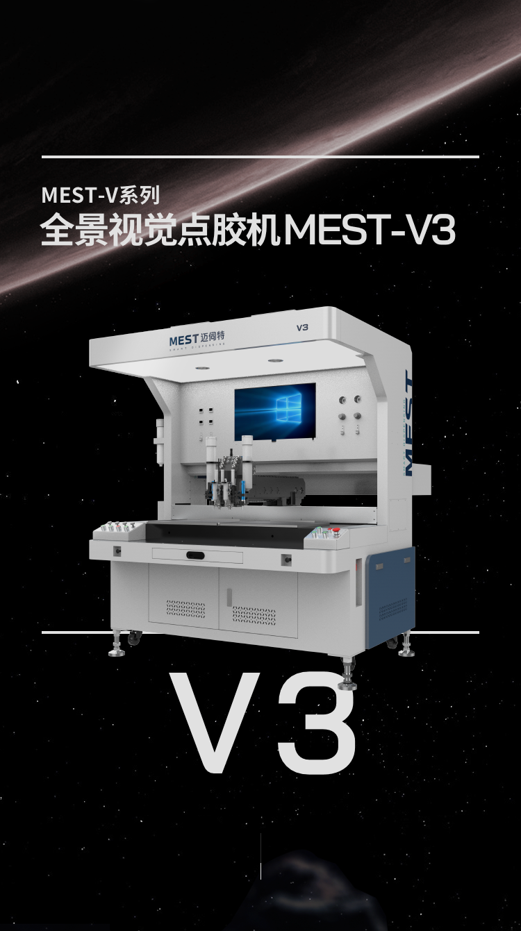 全景視覺點膠機MEST-V 系列作為邁伺特自主研發生產的大平臺視覺點膠機具有顯著的點膠優勢和高性價比。