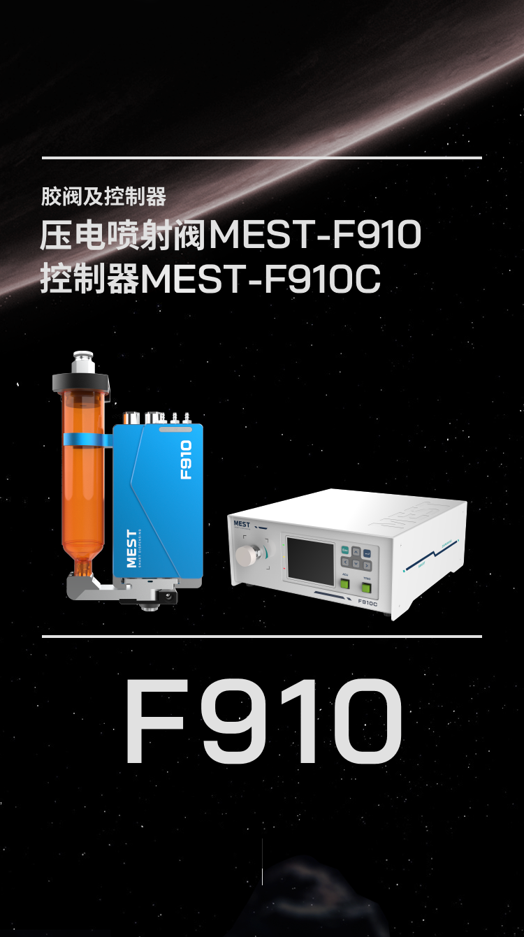 MEST-F910C 控制器需要搭載壓電閥配套使用,輸出頻率可達 1000Hz,具備雙路加熱功能和膠筒氣壓調節。