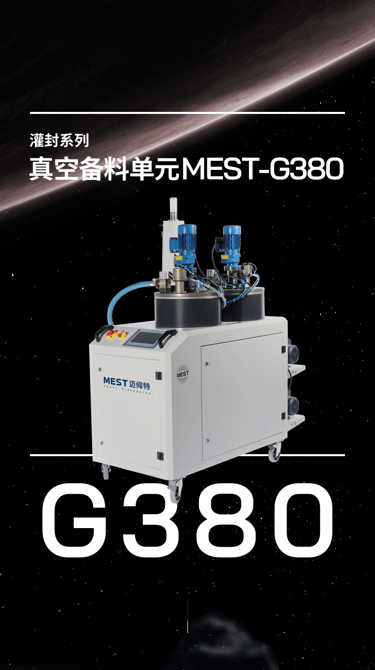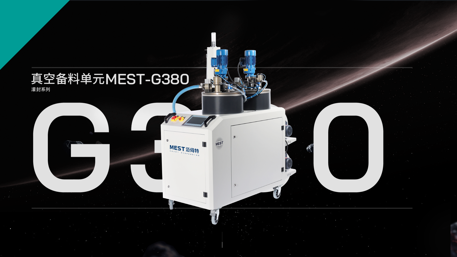 真空備料單元MEST-G380用于處理會與水汽發生反應或需要在真空中準備的敏感材料,具備加熱、攪拌、抽真空等膠水預處理功能。