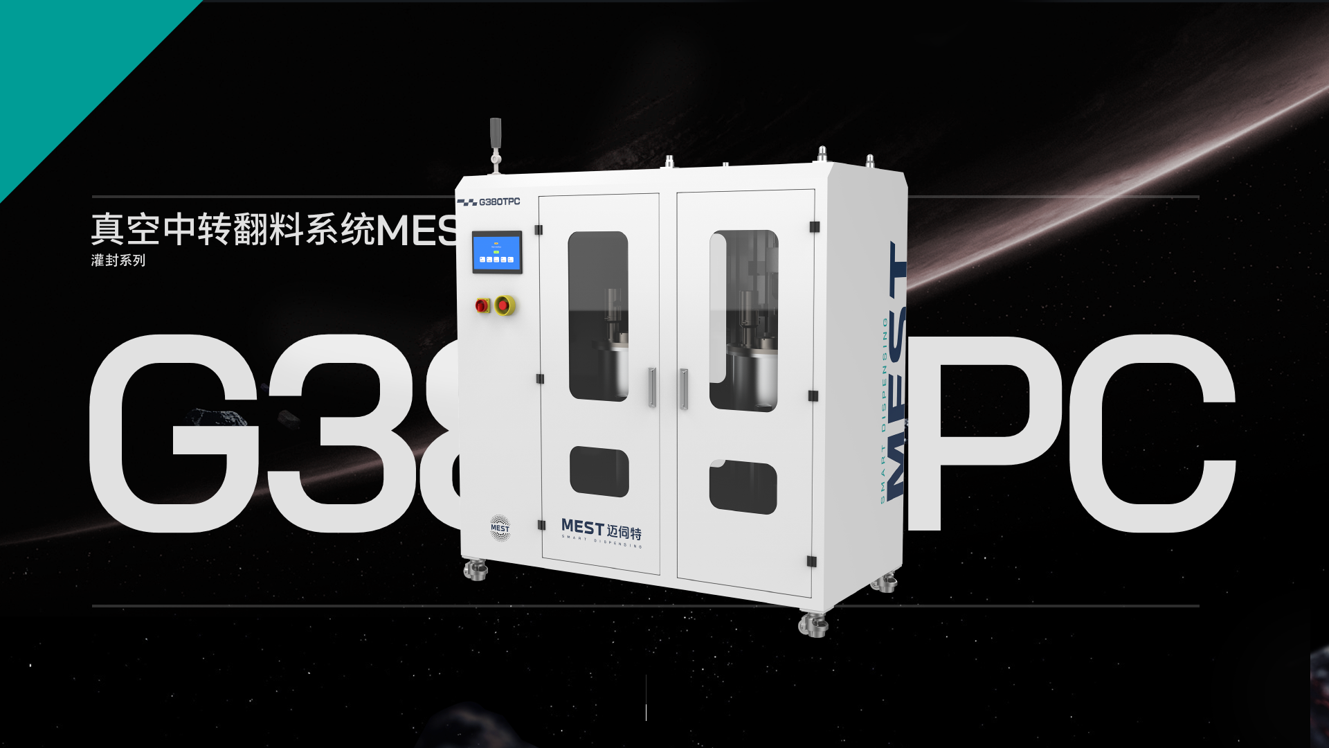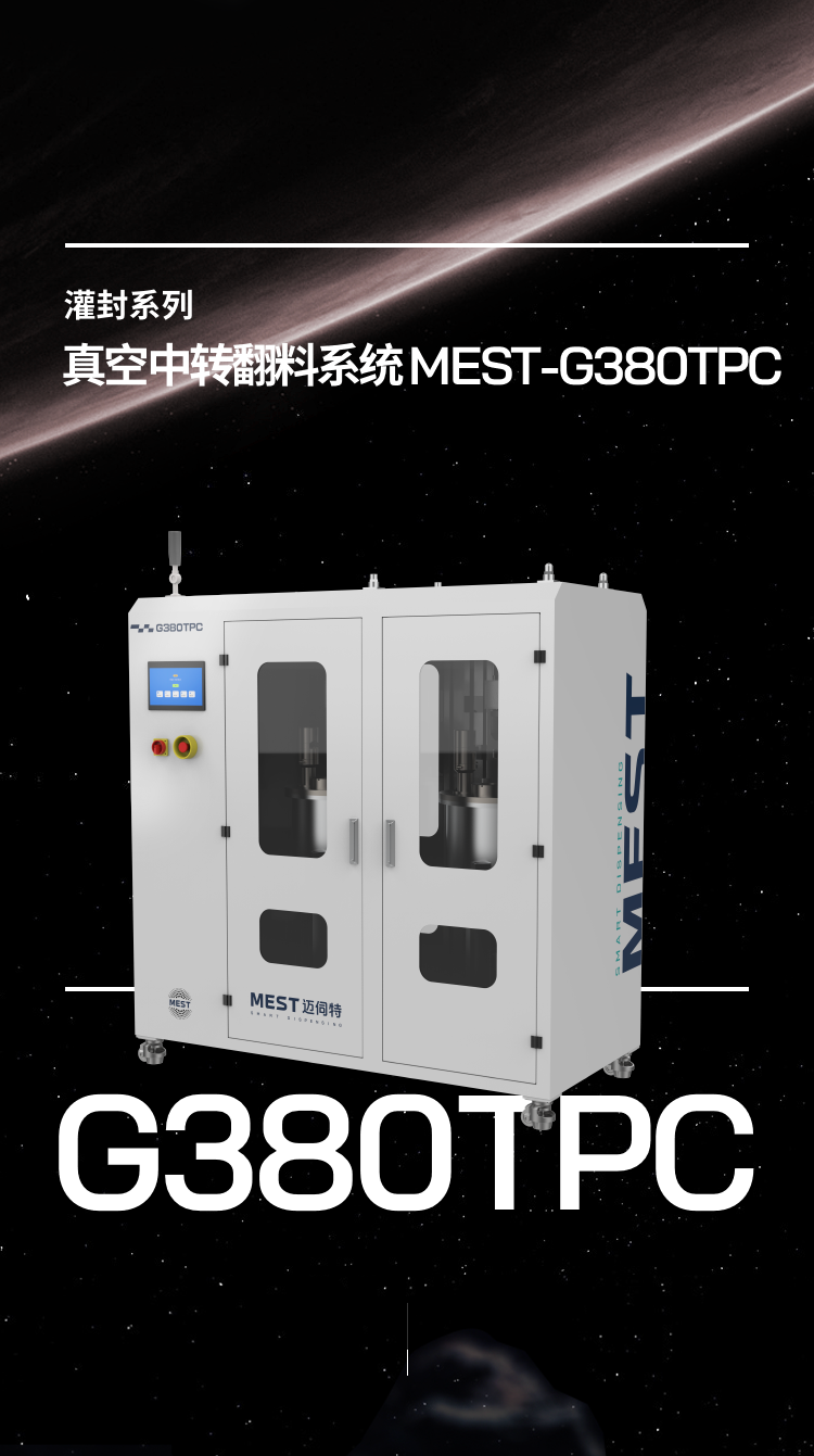 真空中轉翻料系統MEST-G380TPC用于處理會與水分發生反應或需要在真空中準備的高粘度50000-100000敏感材料,具備 加熱、攪拌、抽真空等膠水預處理功能,常與壓盤泵搭配使用。